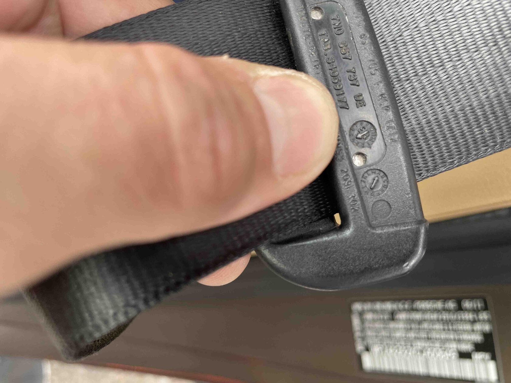 Ремни безопасности 2013 года. Напомню, что автомобиль приехал в Россию в 2014 году. При этом вся безопасность целая. Подушки безопасности на месте. Все стекла 2011 года. Зачем меняли ремни безопасности, непонятно. Единственный ремень безопасности 2011 года - это детский, который по середине. Для нас это осталось загадкой.