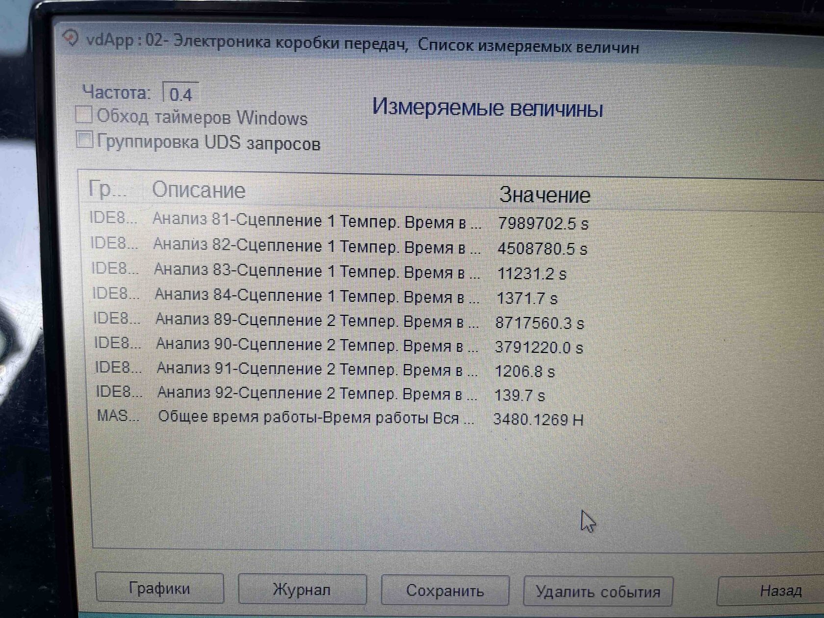 Кстати эти группы очень полезны для диагностики коробки передач. Мы видим, как часто перегревали коробку и при какой температуре сцепления она больше всего эксплуатировалась.